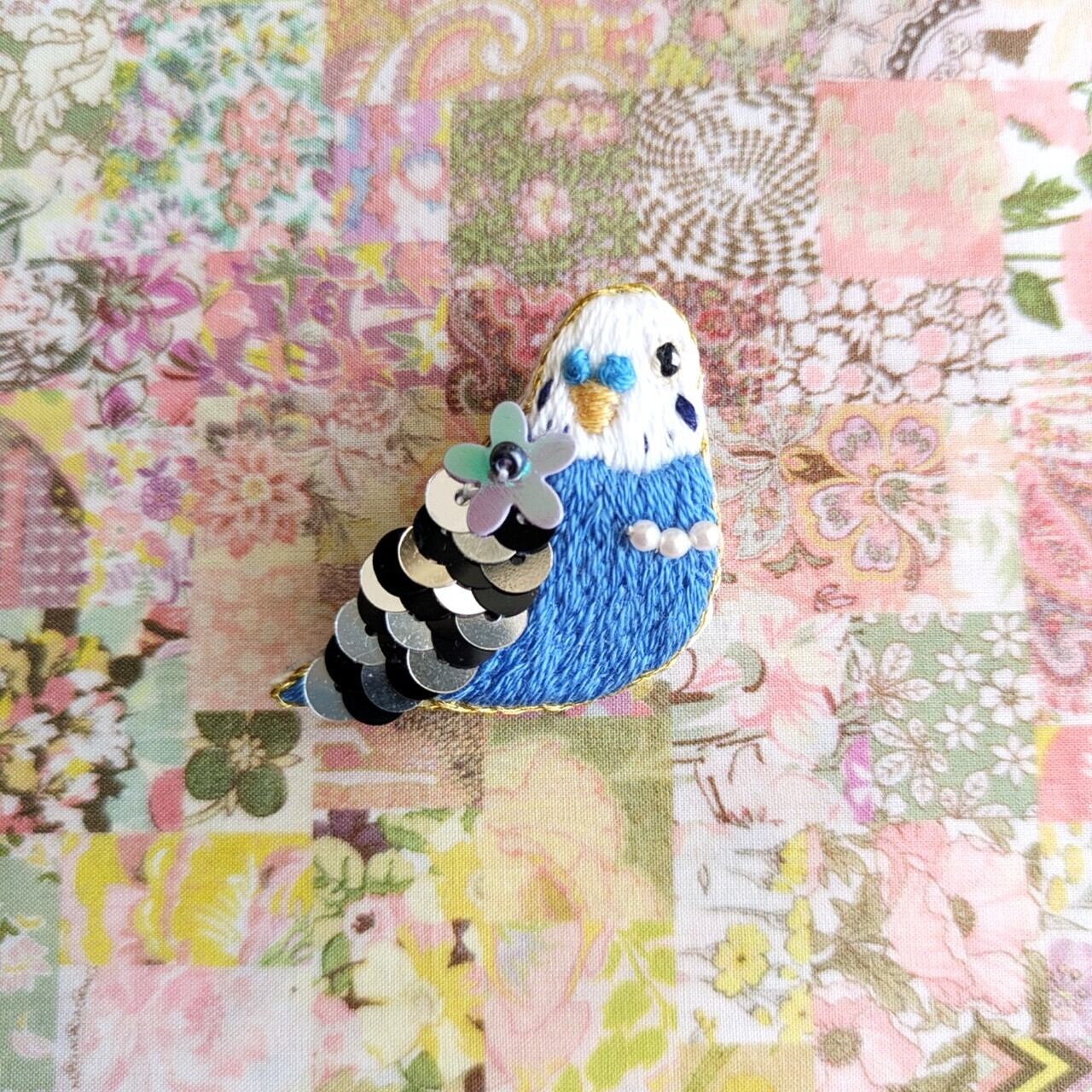小ぶりなセキセイインコの羽をスパンコールで表現しました。