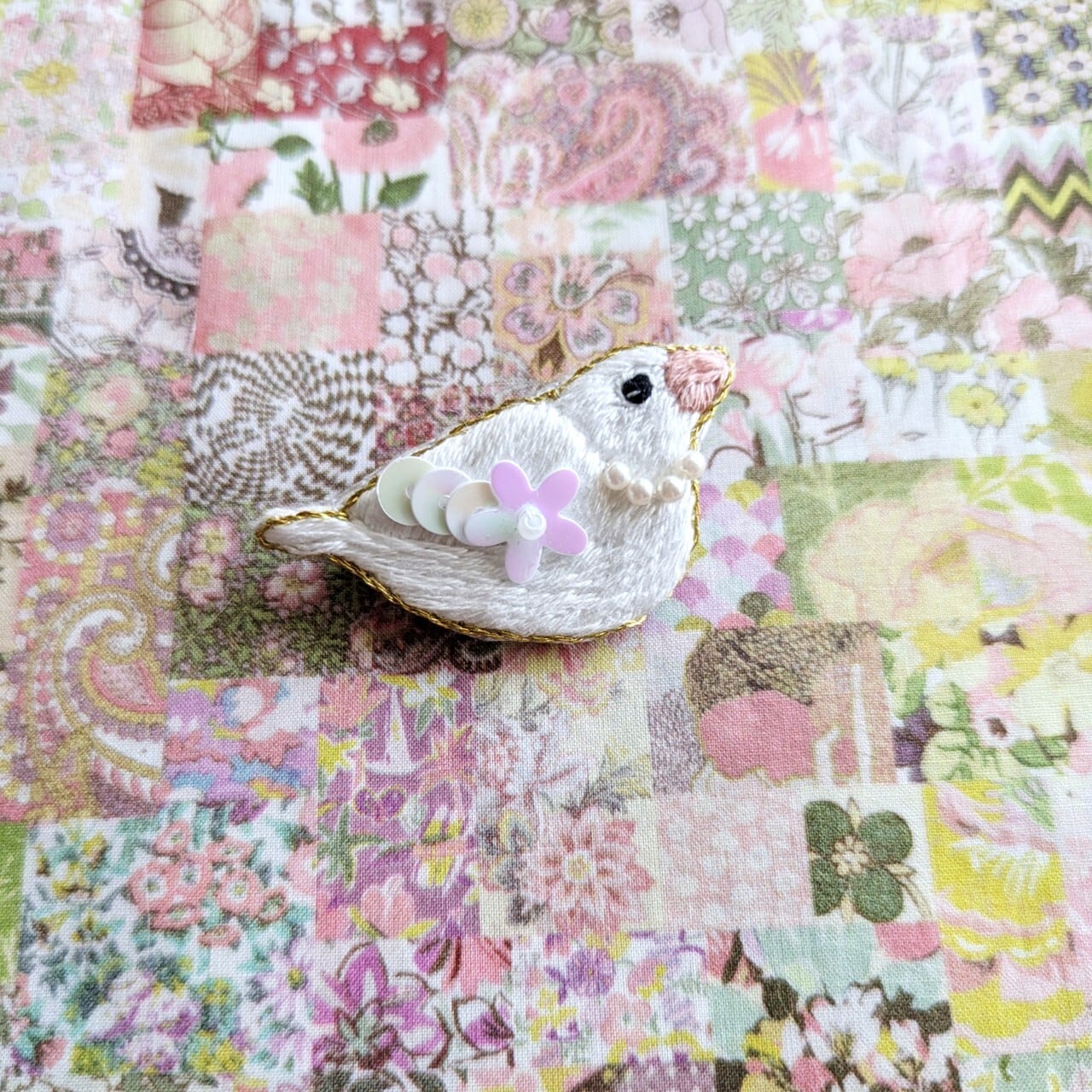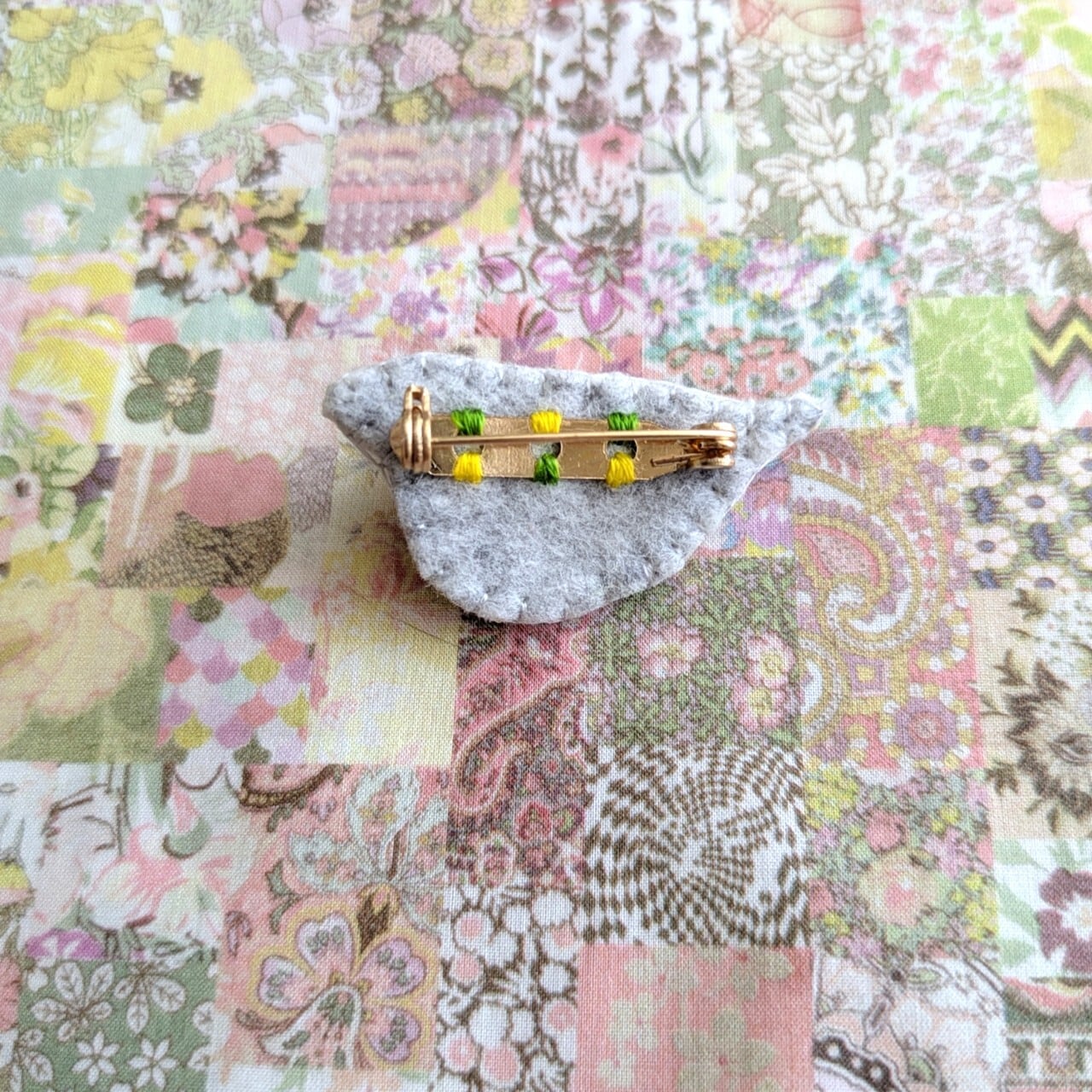 手刺繍でひと針ひと針丁寧にしつらえた小ぶりなコロンとした刺繍ブローチです。